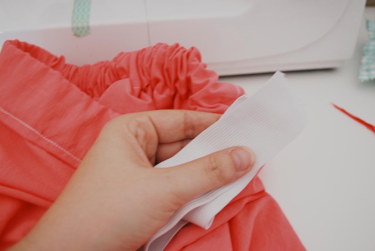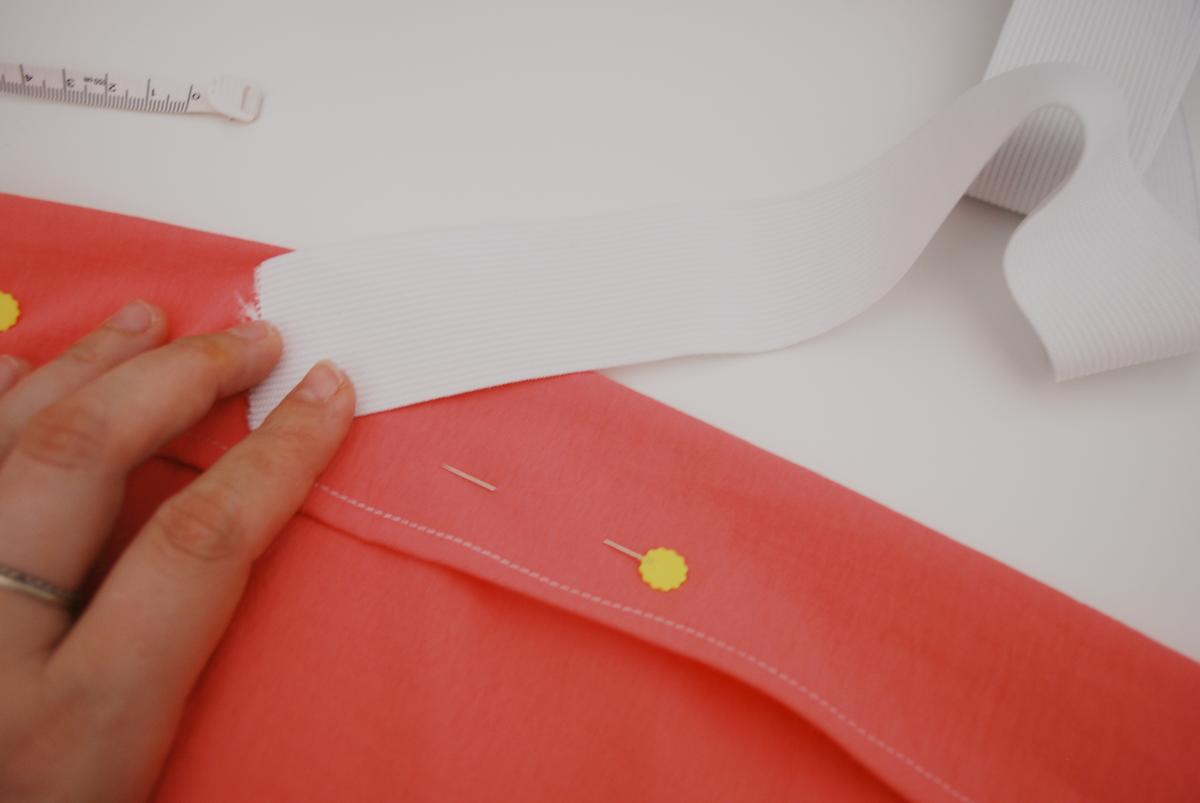 Cortamos la goma midiendo nuestro contorno de cintura y quitando algún cm. Lo mejor es ponérsela alrededor y mirar como estamos cómodas.