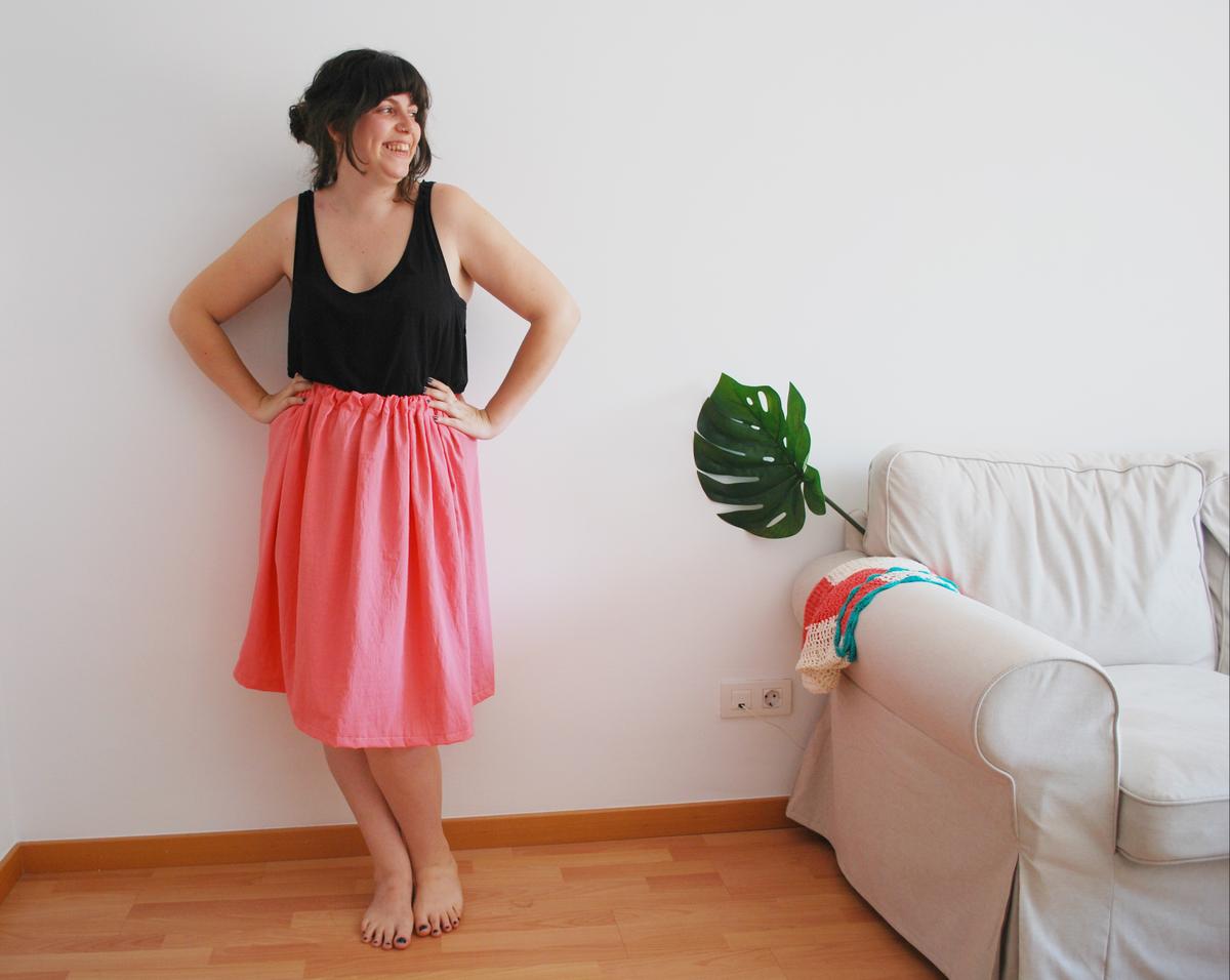 Así que hoy os quiero enseñar la primera falda que me he hecho. Por supuesto que no es perfecta, y seguro que hay formas mucho más profesionales de hacerla, pero estoy muy contenta con ella y además es muy fácil de hacer para empezar a introduciros en el mundo de la ropa hecha por vosotras mismas.