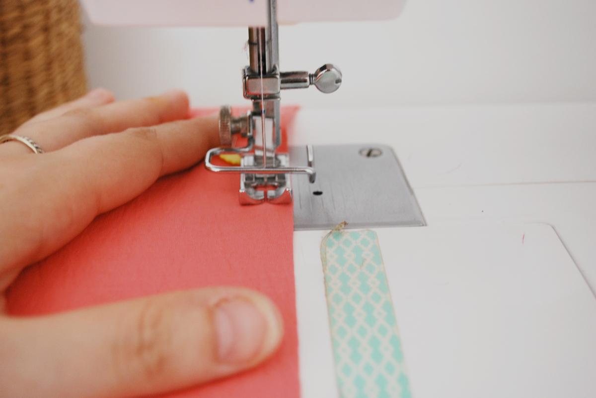 Una vez tenemos los dos extremos juntos, cosemos la goma a 1 cm y le damos varias pasadas para que quede bien fija.