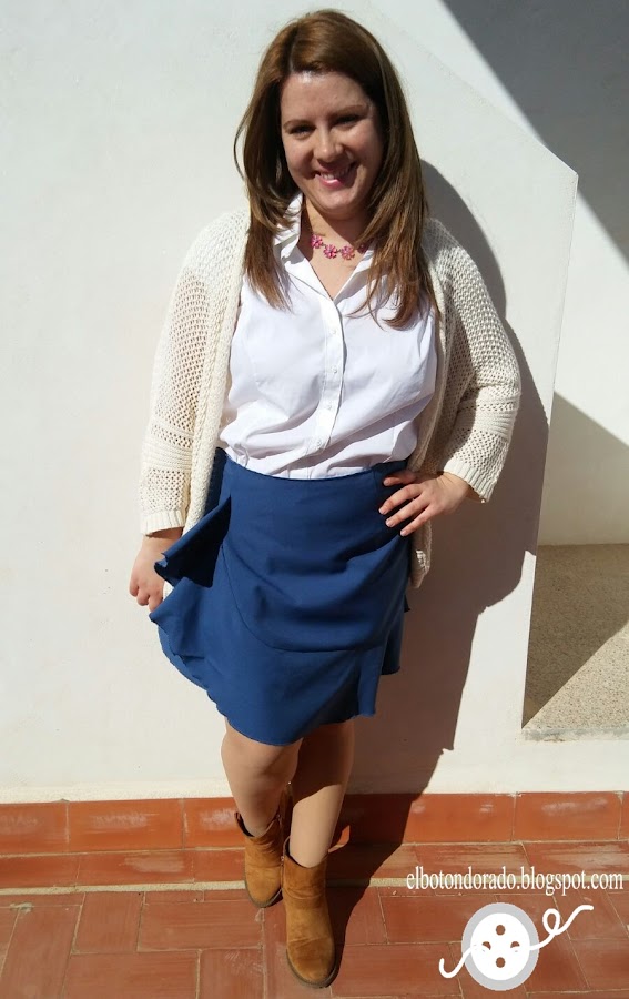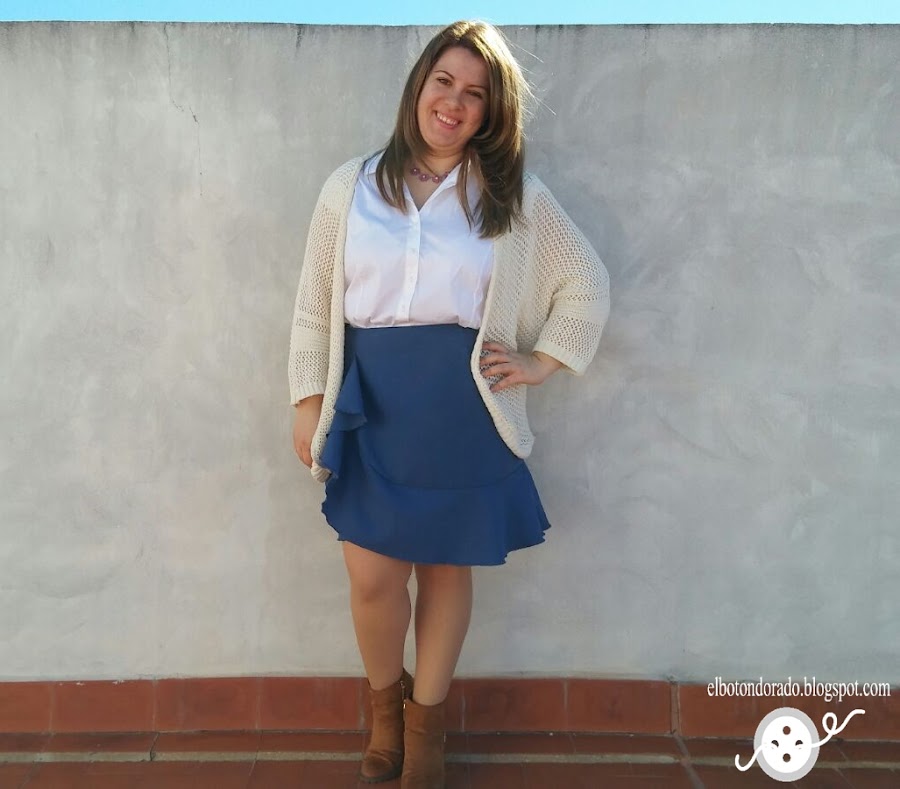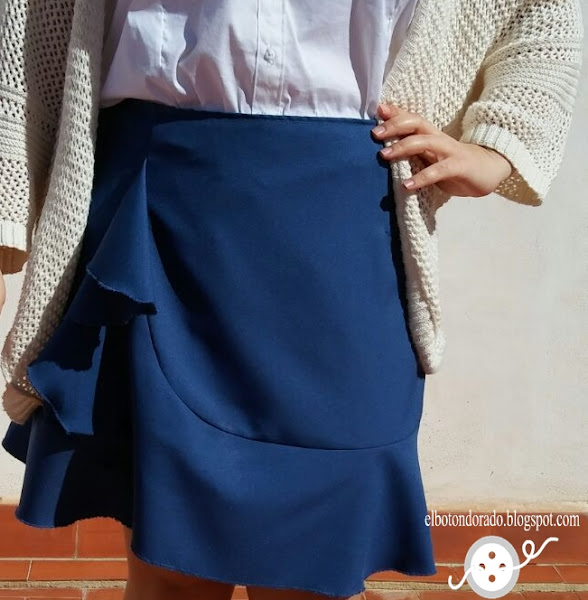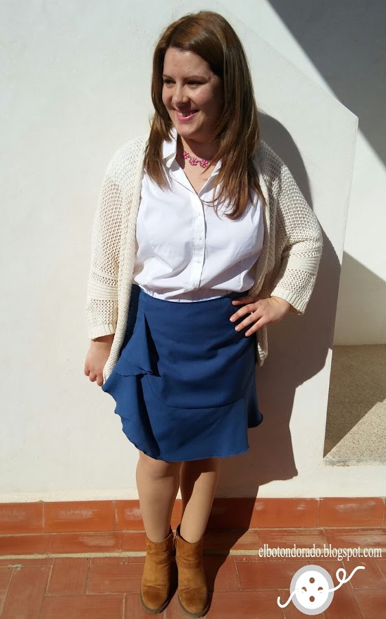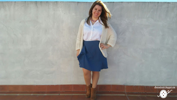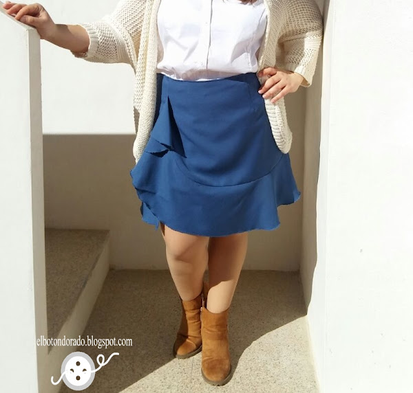 Os quiero enseñar mi última falda. Aunque sea una falda con volantes, estiliza la figura y sienta bien a todas las mujeres porque se ajusta en la parte superior. Es en el bajo donde está el volante que baja desde la cadera, así que no debemos preocuparnos porque no afea la figura.