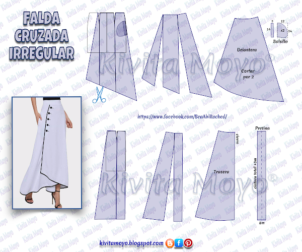 Por ultimo trazar una pretina que mida la cintura total exacta mas 3 cm para el cruce de abotonadura, por 8 cm de ancho mas margenes.
