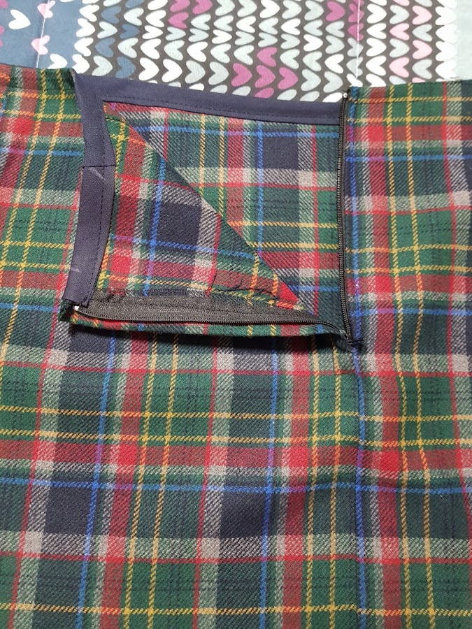 Esta falda al igual que la otra tampoco la he forrado , en realidad no hace falta un forro el tejido no se engancha nada en las medias , y la cinturilla la ha pulido con una cinta al bies .