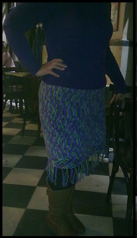 Mi falda, la empecé con una talla y ahora que me la pongo tengo otra, así que me queda un poco grande. Con el forro la verdad es que me queda mejor, !pero no pienso deshacerla! porque ya estoy deshaciendo varias cosas para ajustarlas a mi nueva talla y la verdad es que me aburreeeee