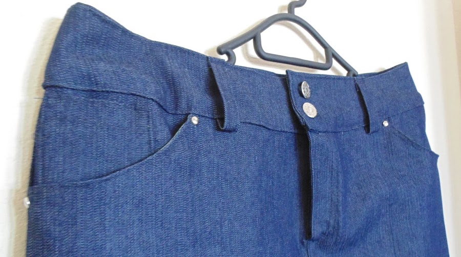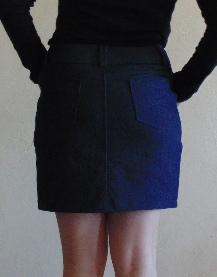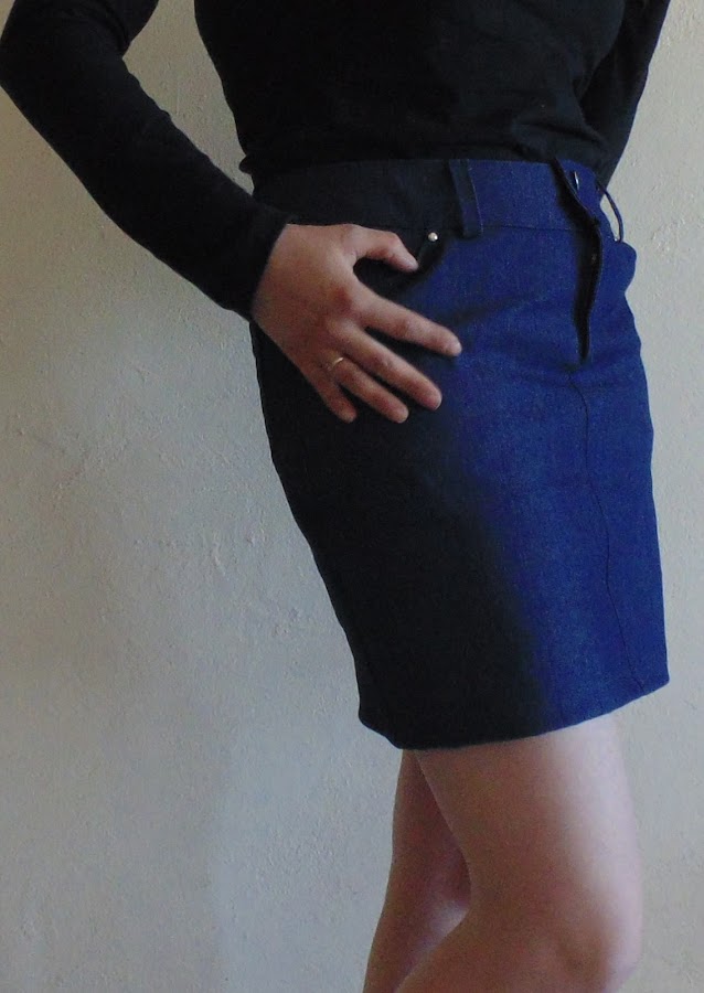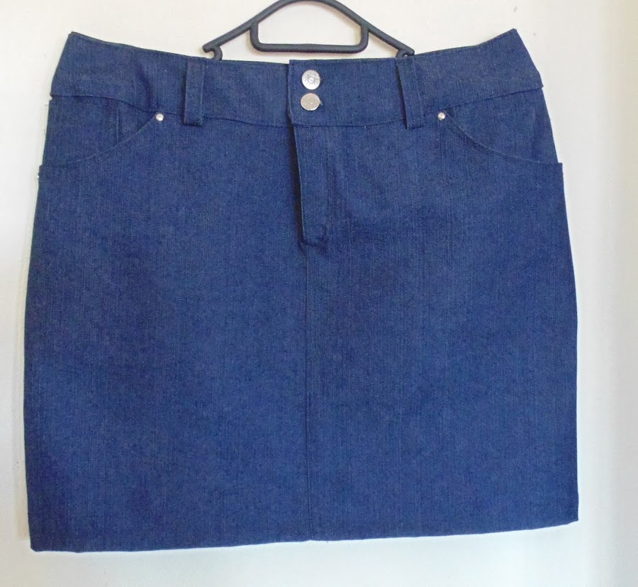 Hoy quiero mostrarle una falda muy especial para mi, ya que la confeccioné a partir de cero o sea hice el patrón base y realice todas la modificaciones para transformarla en una falda clásica de jeans y este es el resultado: