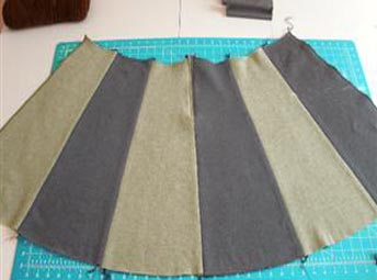 La única forma era hacer la falda en dos colores y por lo tanto en ocho gajos.