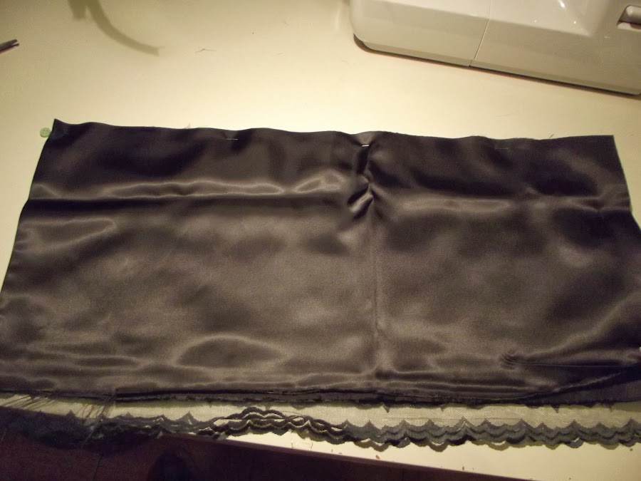 Uní la parte del forro y la del tul por la cintura, lo hilvane y lo pase una costura con la maquina.