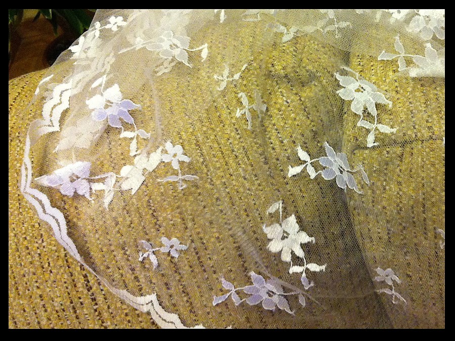 Una especie de tul con florecitas para cuando se me ocurriese que hacer con ella, y pensé si la tiño no tengo nada que perder total si se rompe se rompió.