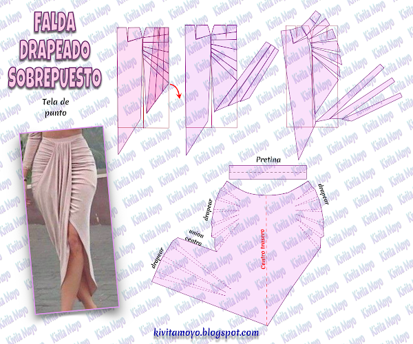 El sobredrapeado solo ira de un lado del frente de la falda.