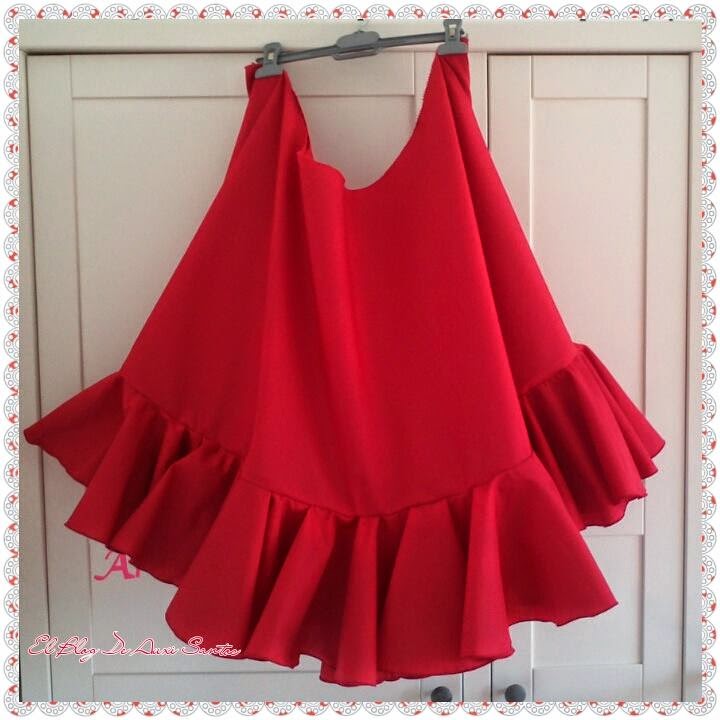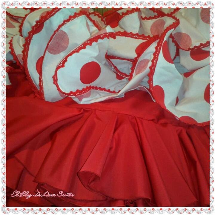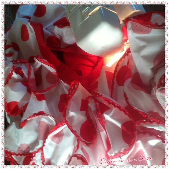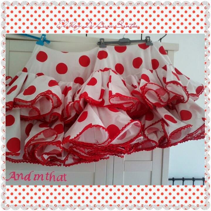 para montar los volante a la falda colocamos los volantes por el derecho en el revés de la falda