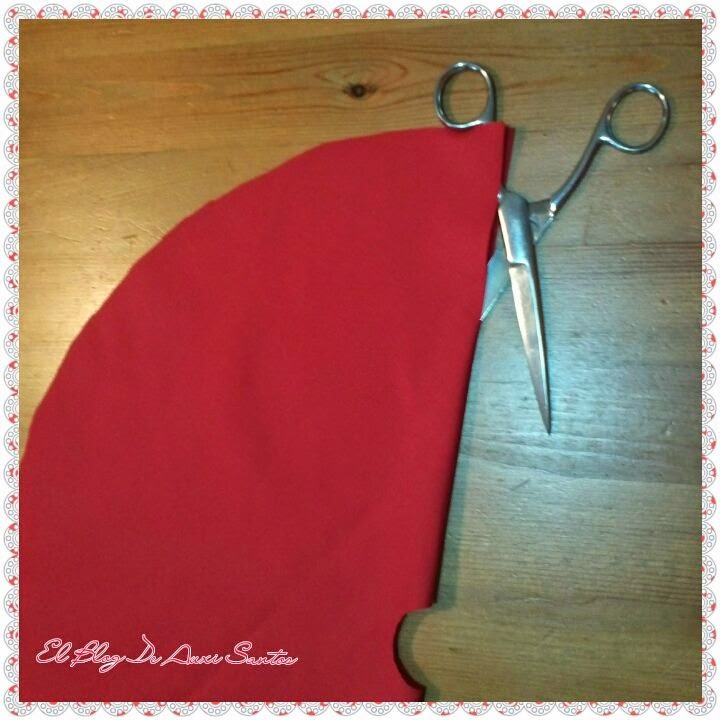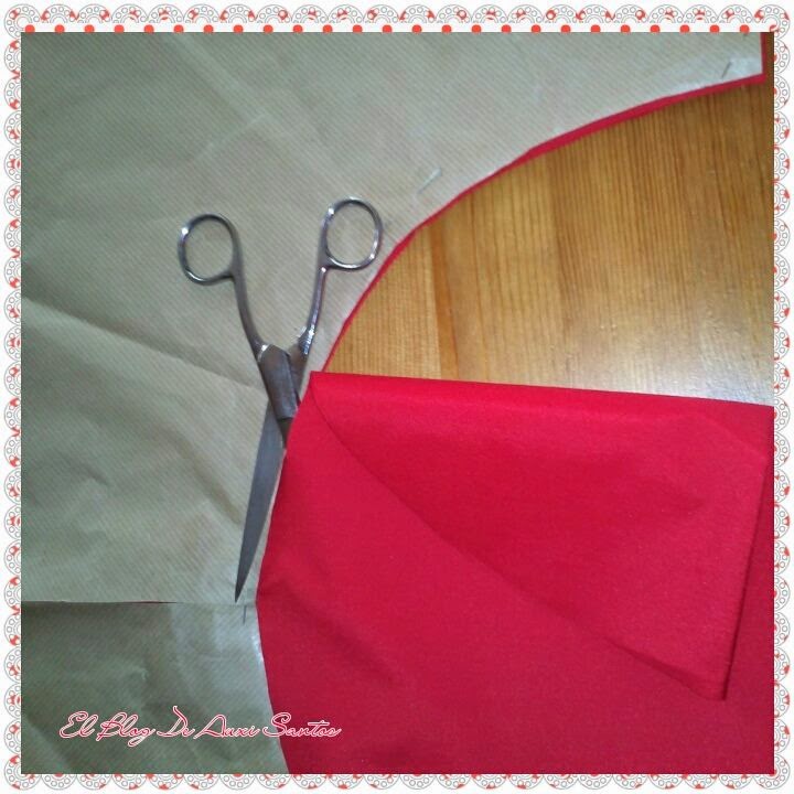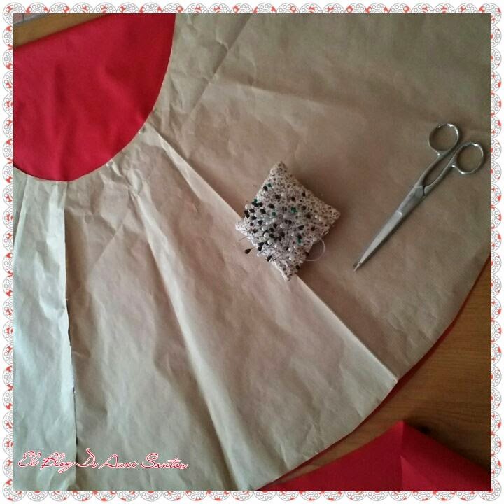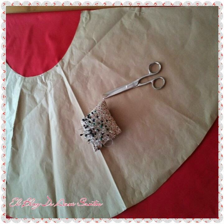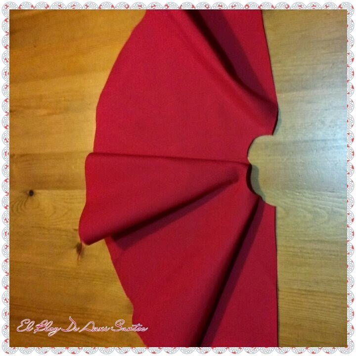colocamos el patrón de la falda de modo que el doblez de la tela coincida con la boca de la falda