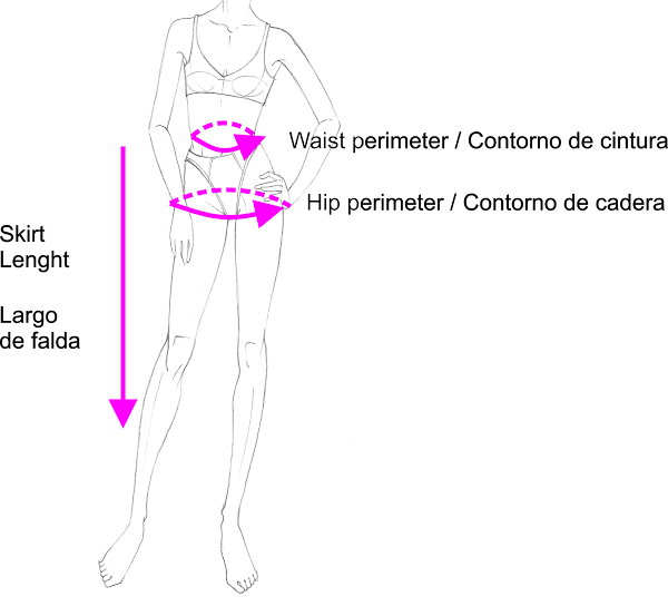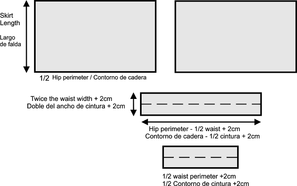 Como puedes ver no concreto medidas, te he doy la forma de calcular con tus propias medidas la forma de cortar las piezas de la falda que son 4.