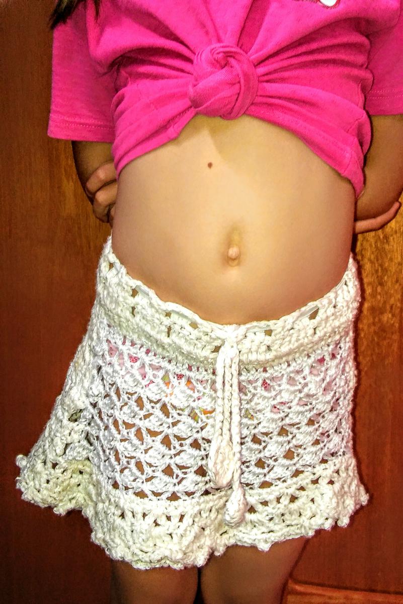 Llevamos un verano muy caluroso por lo que no dejo de tejer cositas frescas como las falditas blancas de ganchillo que lleva mi niña.
