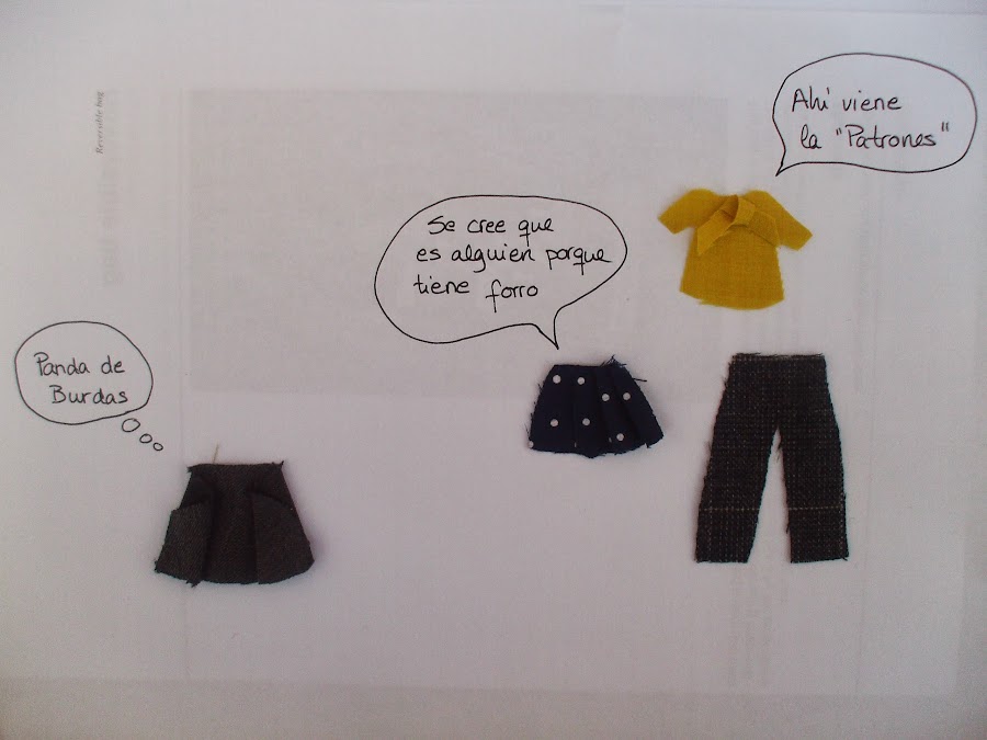 La desbocá ya ha estado en Mercadona y en la carnicería, pero no es apta para la oficina, donde no quiero permitirme la extravagancia de llevar una falda por encima de la rodilla. Y estando ayer en la cola de la carnicería, y mientras me sacaba los hilvanes de las miles de costuras de dentro del bolsillo, reflexionaba yo sobre porqué esta falda no me ha quedado bien. Mi primera respuesta es que el patrón es muy malo. Cierto y confirmado por mi madre, que lo analizó y emitió veredicto afirmativo. También probado por esta compañera costurera y más experta que yo en la revista.