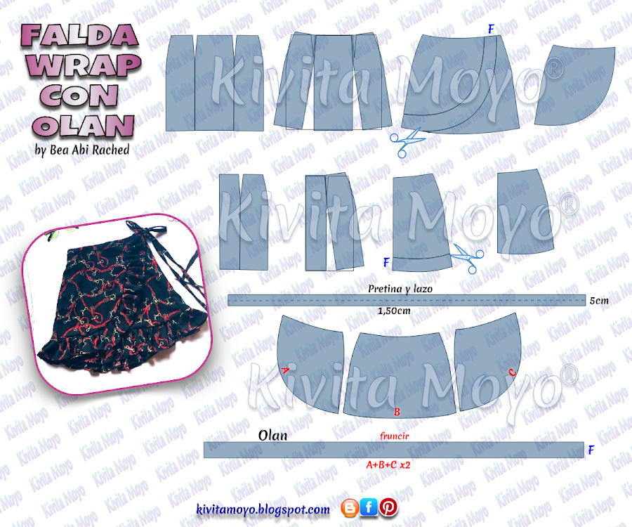 Recordar que ocupara en tela como una falda y media. O sea 2 delanteras y una trasera mas el olan y pretina.