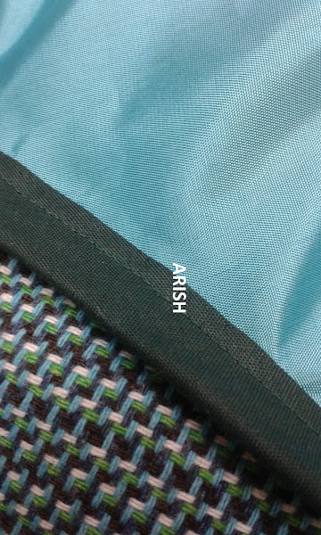 como el tejido de lana pica un poco, he utilizado un biés de algodón en verde botella para hacer la cinturilla.