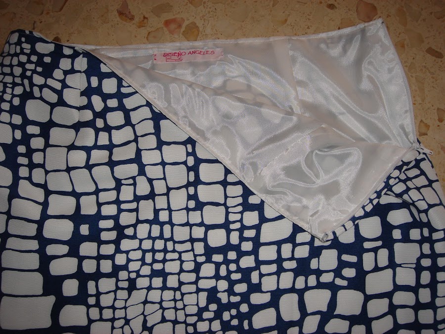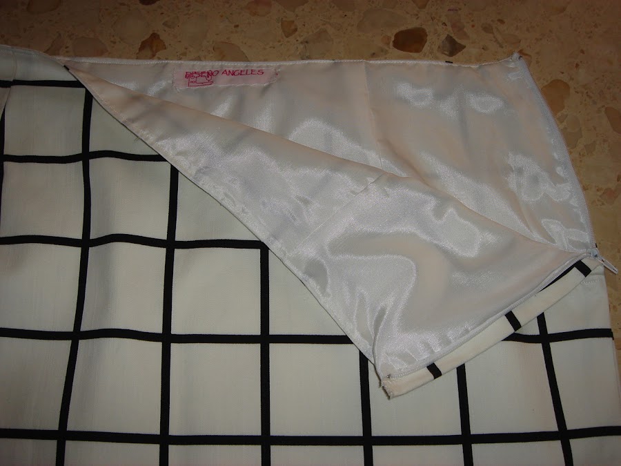 La cremallera va en el lateral y por supuesto la falda va forrada con forro de seda de color blanco ah¡¡ y etiqueta con mi nombre.