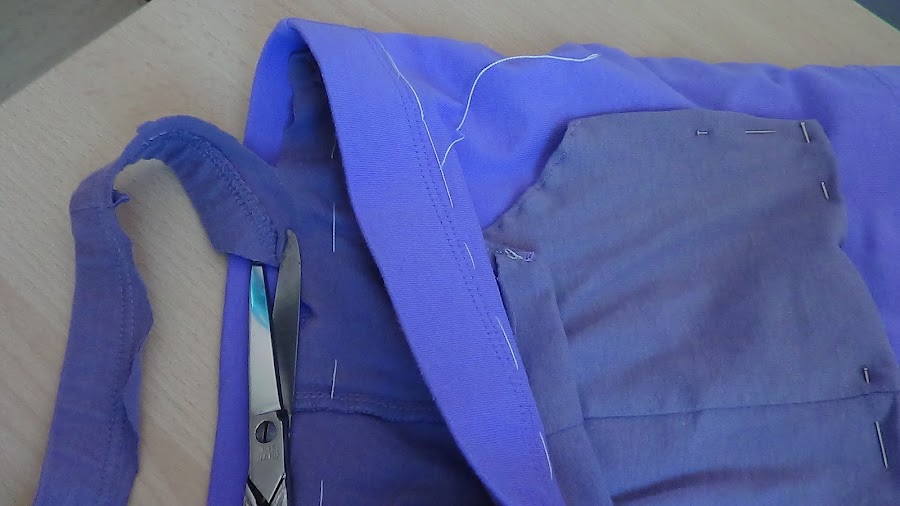 . Juntamos las 2 piernas , sujetamos bien con alfileres para que no se nos mueva y cortamos.