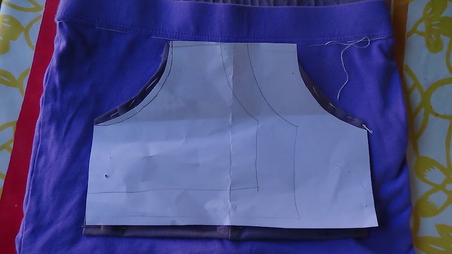 Cortamos un trozo de tela con la forma del bolsillo central,aprovechando la tela de las piernas sobrante.