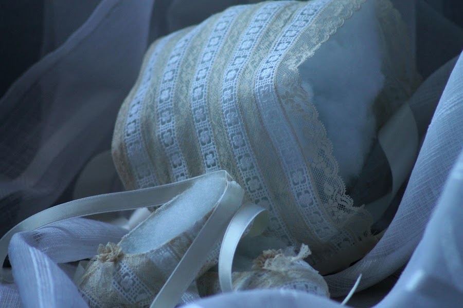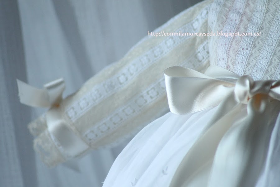 Desde luego, tengo que reconocer que lo que mas me gusta es enredar, bueno. . yo me entiendo. Quiero decir, que cuando tengo que detener la cabeza en cosas muy concretas, que no necesitan ponerle diversión, algo, me aburro. pero no es así con esto, casi pasatiempo mio, y es, buscar unas puntillitas, entre las muchas que tengo, que cumplan con la necesidad de hacer que un faldón antiguo, y de familia, siga teniendo ese encanto de la primera vez, esa primera que sirvió para "sacar un bebé de pila", que así se decía antes, en mis tiempos, y este, con ese porte y encanto de lo antiguo, hubo, por segunda vez, que adaptarlo a ese cometido. pues mira por donde, que me encontré estas puntillitas, chiquititas y elegantes, para darle toda su hermosura primera, y a la vez, conjuntarlo con el gorro, capota, y zapatitos. Mirad que lindo faldón, así el resultado. Besos amigas, y a seguir disfrutando de este poquito de agosto que nos queda.
