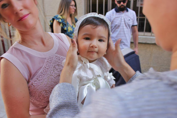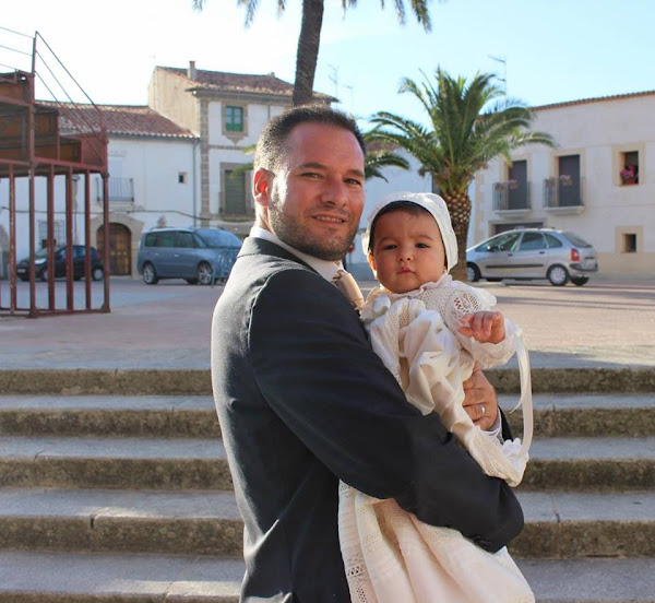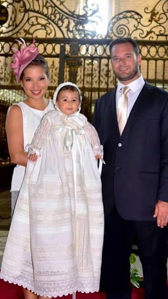 Y esta vez, con sus papis y ella en casa, fué un disfrute, que ya, anda bastante, y que pude verla, aquí con sus galas puestas, lujo total. . jejejejeLa pena, es que no es igual ver el faldón en vivo que en fotos, pero lo guapos que iban los tres. . aquí los tenéis, que voy a deciros, si se ve perfectamente. Un abrazo para ellos, y los espero nuevamente a tomar un refresquito en cuanto vuelvan a España.