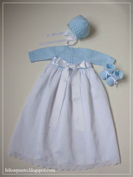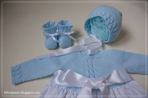 Como siempre, con la capota y patucos a juego, también cargaditos de ochos.