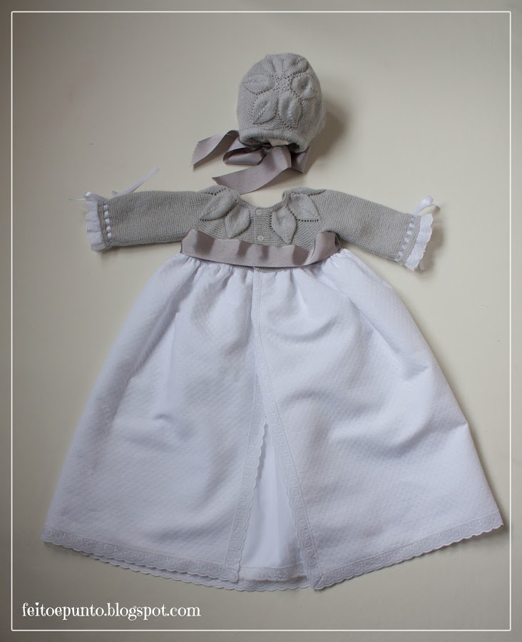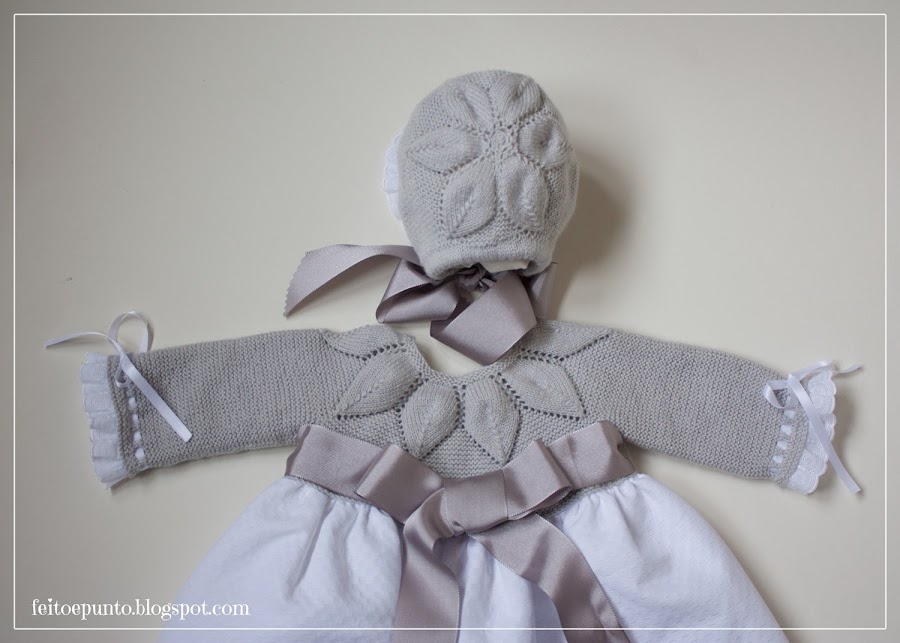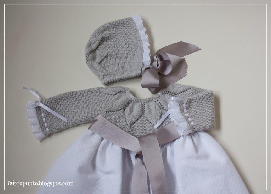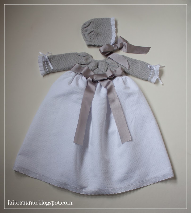 Este faldón ya es un clásico para mí. Cuerpo de lanita, canesú de hojas, falda de piqué, lazo en la cintura... sólo me atrevo a cambiar las puntillas y algún adorno.