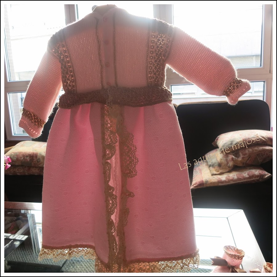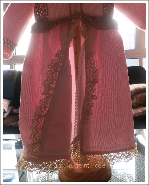 La capota lleva la misma secuencia de dibujos del jersey y va rematada con un volante a ganchillo. Queda muy mona y coqueta, Estrenaba modelo pero n o se comportó demasiado bien en el posado jajajjaaja.