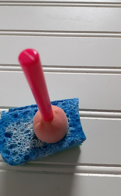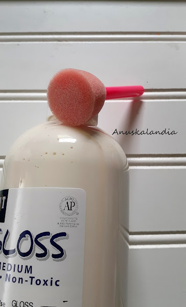 1.- Echamos una o dos gotas de barniz en una esponja (de tu elección). Recomiendo del tipo que se ve en la foto o similar. Descargamos en un trozo de esponja (tipo baño).