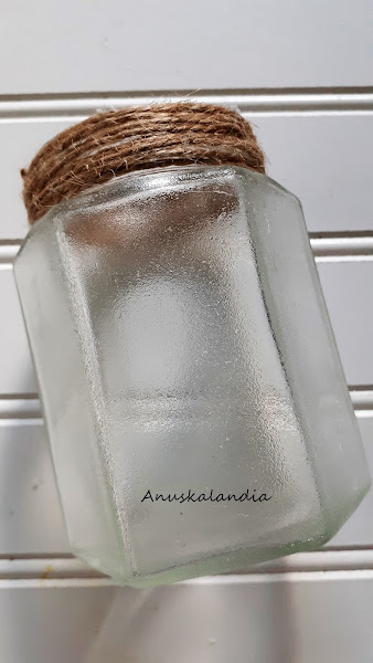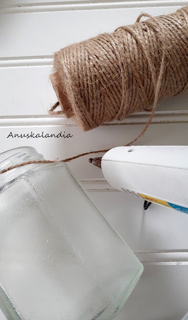 3.- Ya tenemos el frasco con el falso esmerilado. Llega el momento de la decoración. He utilizado cuerda para decorar el cuello del frasco.