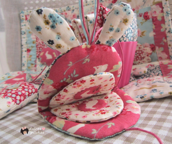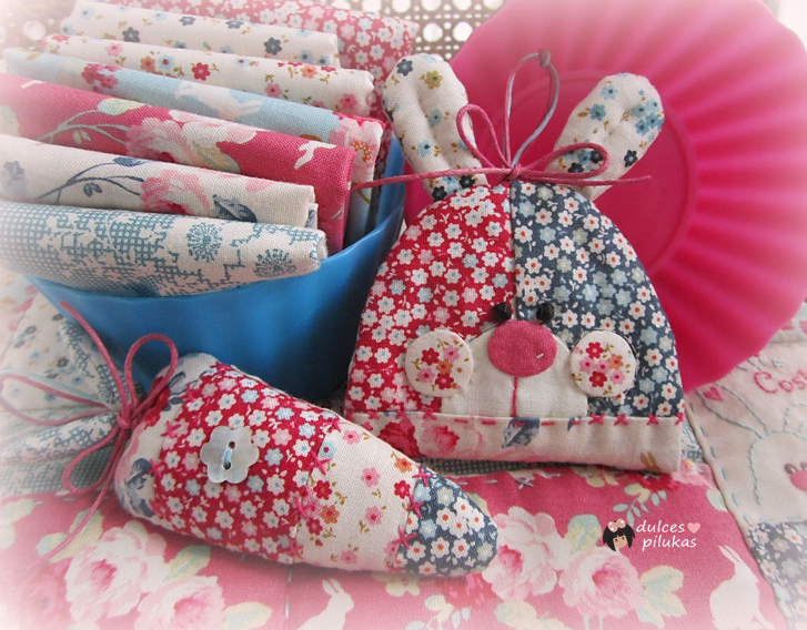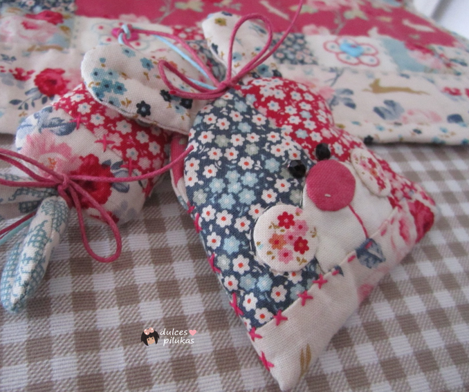 unas hojas acolchadas decoradas con más conejitos...