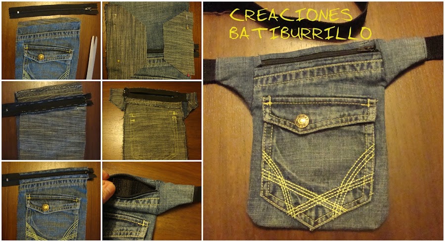 Un viejo pantalón vaquero del armario de mi peque, correas de mochilas del cole que fueron pasando a mejor vida y cremallera.