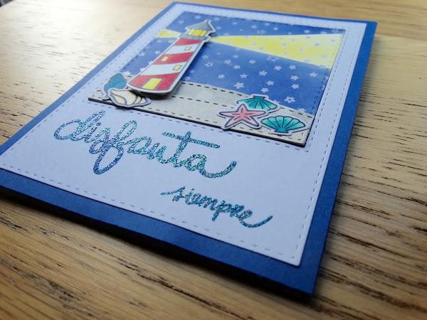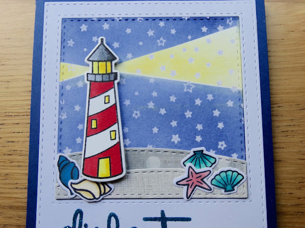 Tengo unos sellos de Lawn Fawn que llevan un faro y me moría de ganas de usarlo, así que cree una escena con él.