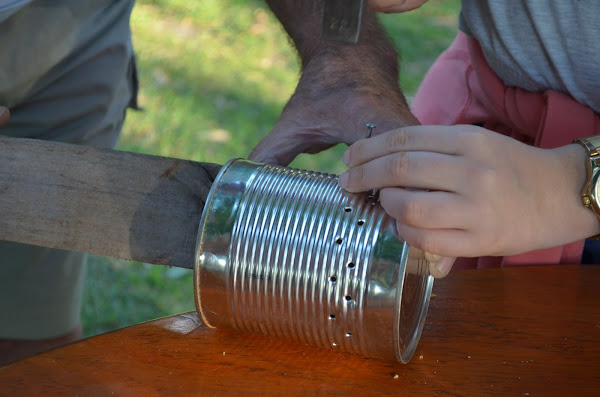 Los materiales que serán necesarios, además de las latas, serán clavos para perforarlas y algún tipo de hilo para realizar las manijas. Dentro de cada una se pondrá una capa de sal gruesa y una vela.
