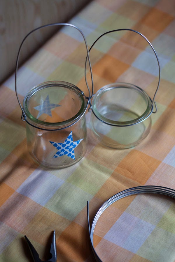 Para empezar vamos a hacerle el asa al farolillo. Podéis hacerlo sin asa también, si os da pereza, pero la gracia está en que con asa son transportables y los podéis llevar, si queréis... ¡a la cabalgata de los Reyes Magos! En lugar de velas normales ponedle una vela de LED y hala, os vais con el farolillo de peregrinación real.