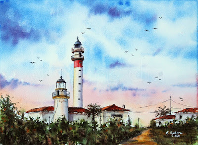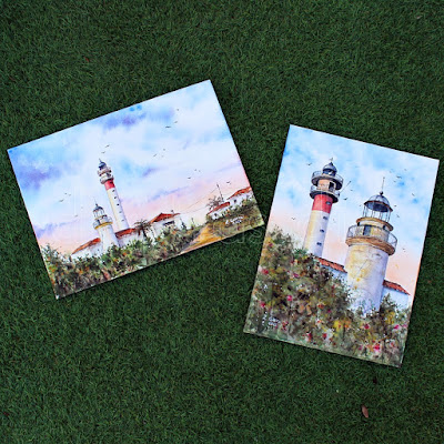 Y después de todo este rollo, os voy a enseñar cómo terminé yo el pasado año. Casi a puntito de finalizar 2020 me entretuve en pintar una pareja de faros con acuarela. Fueron unos faros que llevaba queriendo pintar desde hacía tiempo. Y no quise que terminara el año en el que volví a pintar en acuarela sin hacerlos.