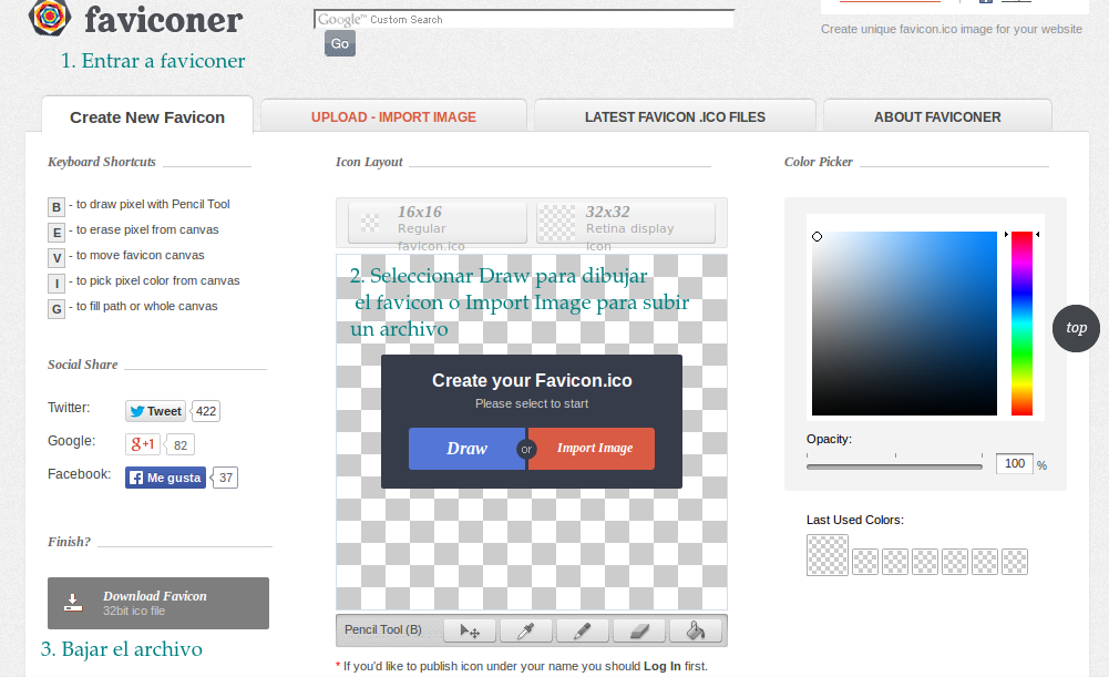 Ahora los pasos para crear tu propio favicon y como montarlo en Blogger