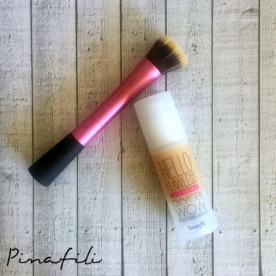 De los 28 días que tiene Febrero, creo que 24 habré usado la base de maquillaje Hello Flawless de Benefit, siempre aplicada con la mofeta de Real Techniques. Es una base muy amarillenta que me viene perfecta para las rojeces, es muy ligera, no pesa nada en la cara y lleva factor de protección 25. De momento sigo con ella, ya veremos si a lo largo de Marzo cambio.