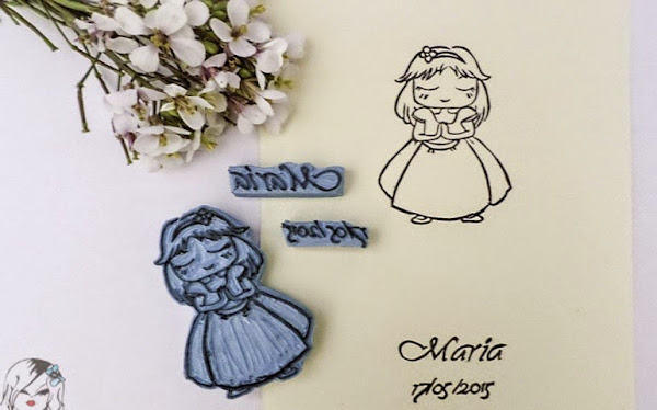 Oh! Mercy es una crack de las ilustraciones y Mayonako es la maestra del carvado de sellos (y de los xupiclips) y se han unido para hacer estos fabulosos sellos para comuniones...