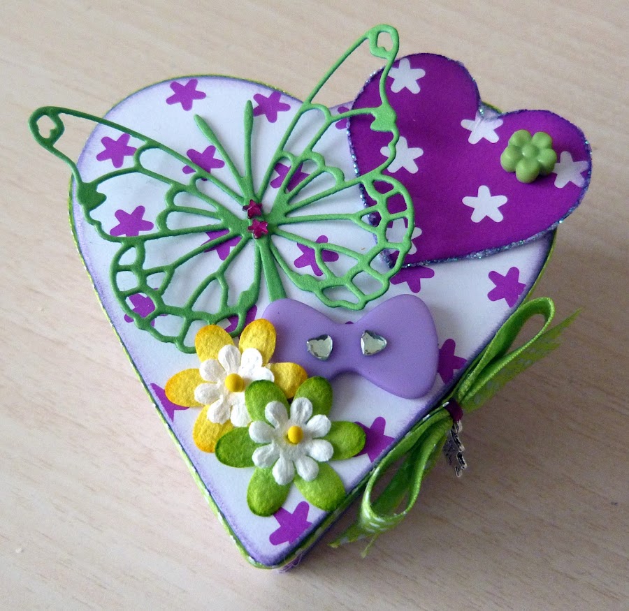 El corazón lleva stickles en color plata y para completar el conjunto unas florecillas y botón con brillantitos.