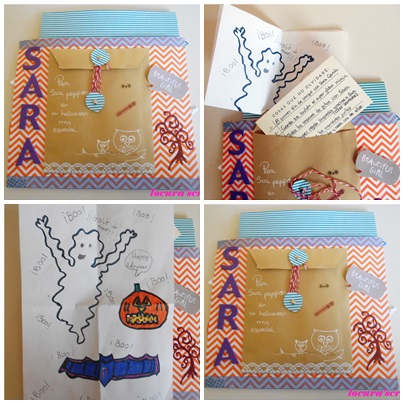 Sara esta de au pair allí , vamos toda una Sara Poppins jijiji , en la parte de atrás de la tarjeta la incluimos un sobre lleno con la carta , un dibujo hecho por marcos y como ella ama las listas , pues no podía faltar una.