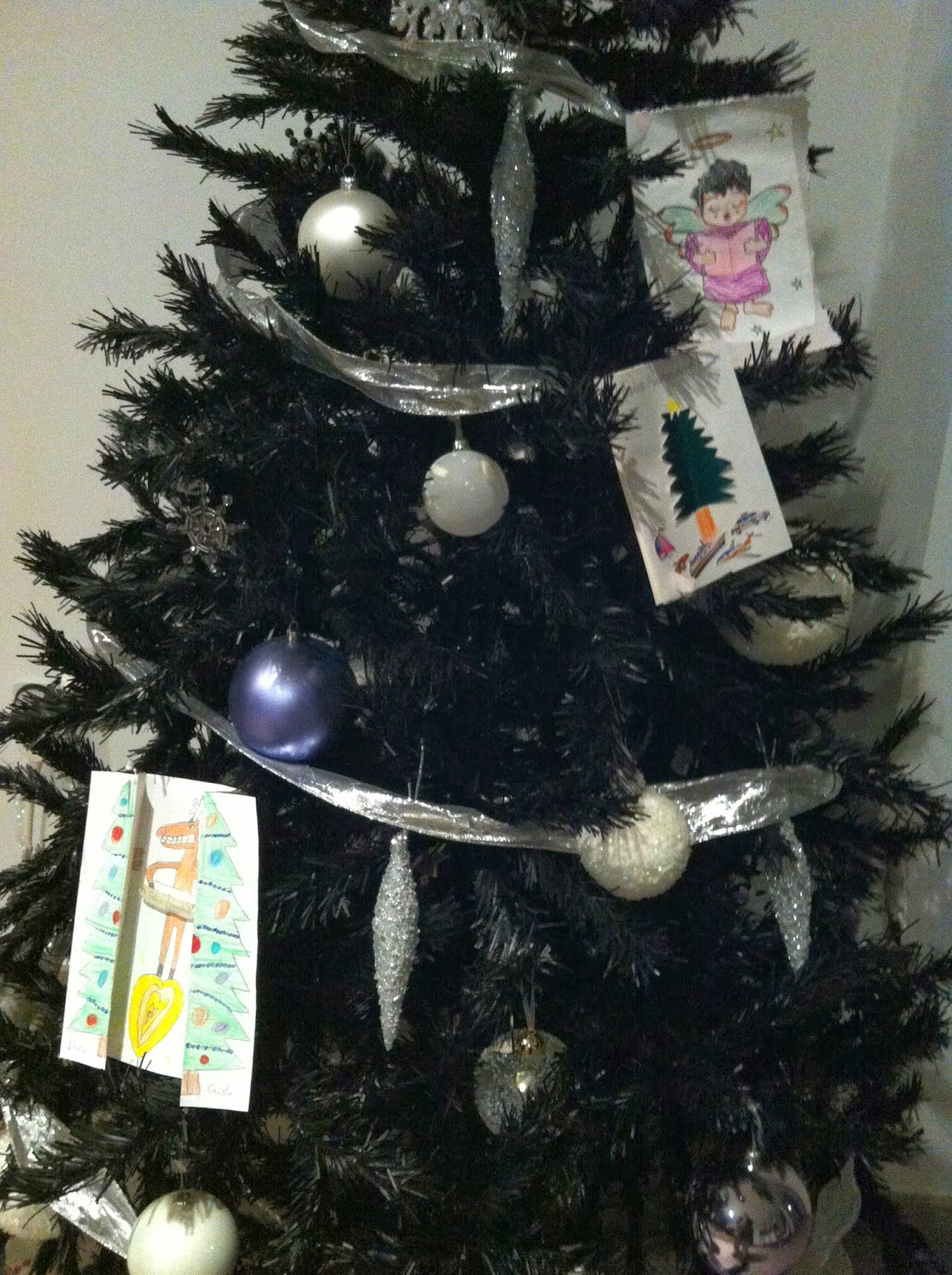 Y dicho y hecho: fue sacarlos del bolsillo y colgarlos en el árbol. Y yo, encantadísima de la vida al ver sus caritas de felicidad cuando descubrieron sus adornitos.