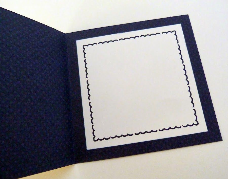 En el interior la cartulina de color hueso para que escribieran la felicitación está troquelada con el troquel de Fiskars Scallop.