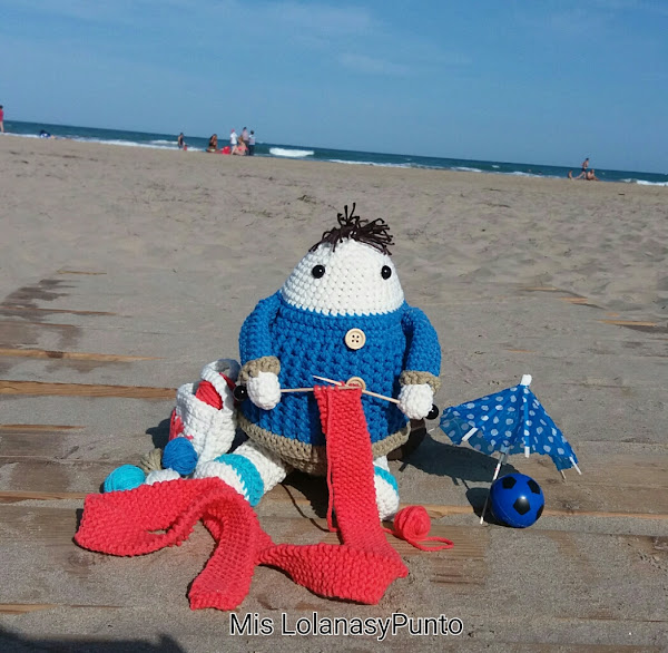 Aquí podéis verlo en la playa, mientras se tejía una bufanda infinita, para este otoño-invierno. Que en Teruel, en invierno hace mucho frío, y yo mientras, tejía un monedero como siempre hago en la playa.