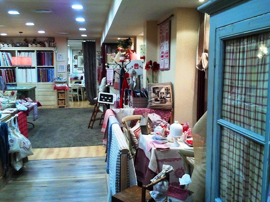 La segunda, ya especializada en patchwork y telas, es Preciosa, se llama Telas de Luna y si tenéis la oportunidad: id, no lo dudéis!! (esta muy cerca del Corte Ingles). Ha pasado a ser (sin ninguna duda) la tienda más bonita que conozco de patchwork..además es bastante grande..vamos..tanto tanto que tuve que sacar estas fotos para enseñárosla (aunque las fotos están hechas con el móvil y se ven un poco mal...creo que veréis a qué me refiero :-)