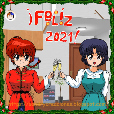 Con este último dibujo del año, con Ranma y Akane brindando, desde SanDryCreaciones os queremos desear una feliz salida de este duro año 2020 y os deseamos una feliz entrada al 2021 deseándoos lo mejor para este nuevo año que empieza, ojalá y sea un año lleno de salud, alegría y mucha luz para todos. También queremos daros las gracias a todos los que nos habéis apoyado durante este año, ha sido una de nuestras mayores alegrías y ojalá sigáis estando junto a nosotros en el nuevo año, muchas gracias a tod@s y ¡Feliz Año 2021!