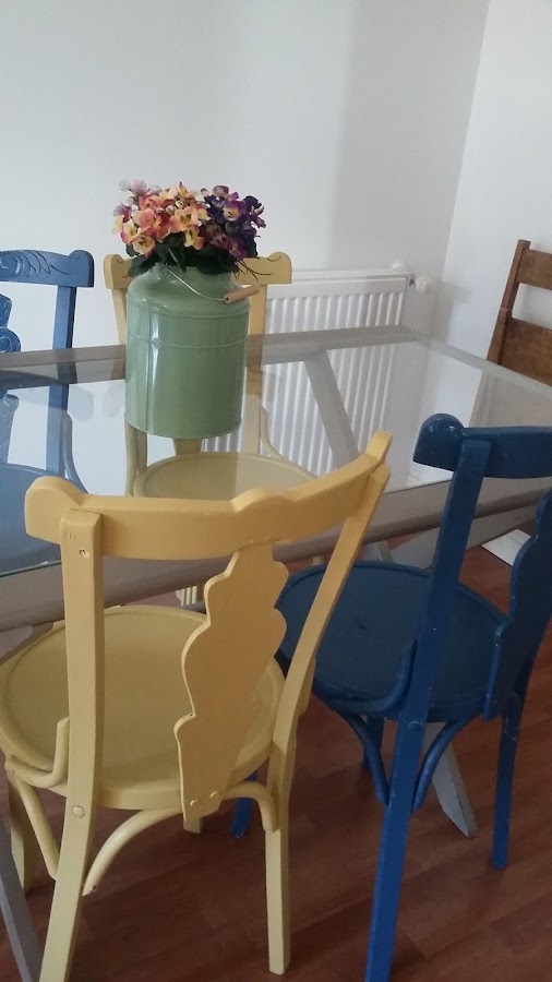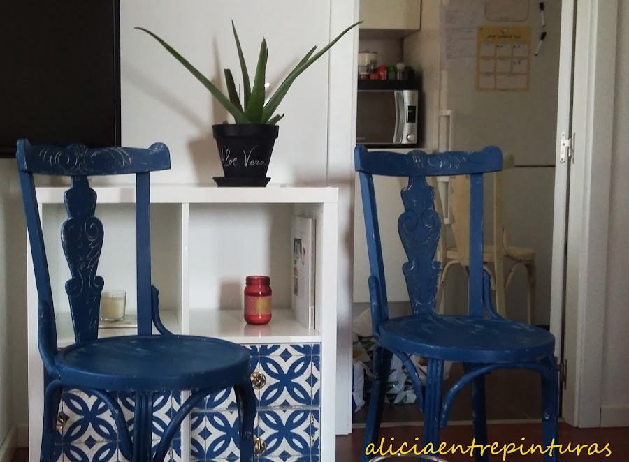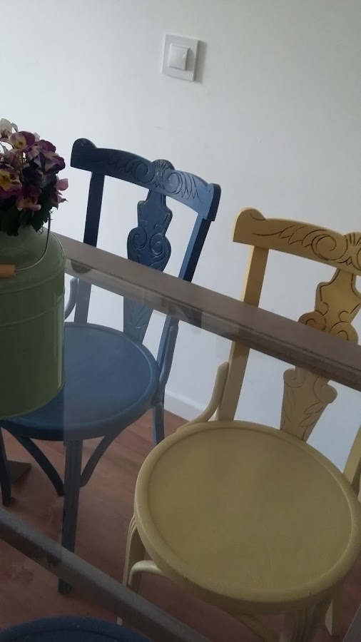 Estas sillas las tenía en el pueblo y después de una pintadita quedaron tan chulas.