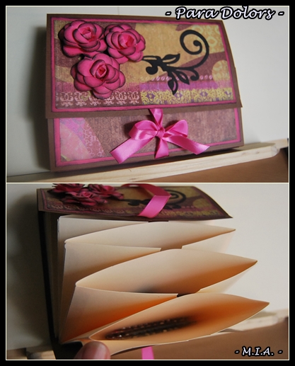 Para Dolors hice un mini conjunto scrapero: Una libreta de notas y una carpetilla de bolsillos para troqueles, estampaciones o pequeños recortes que desee guardar...
