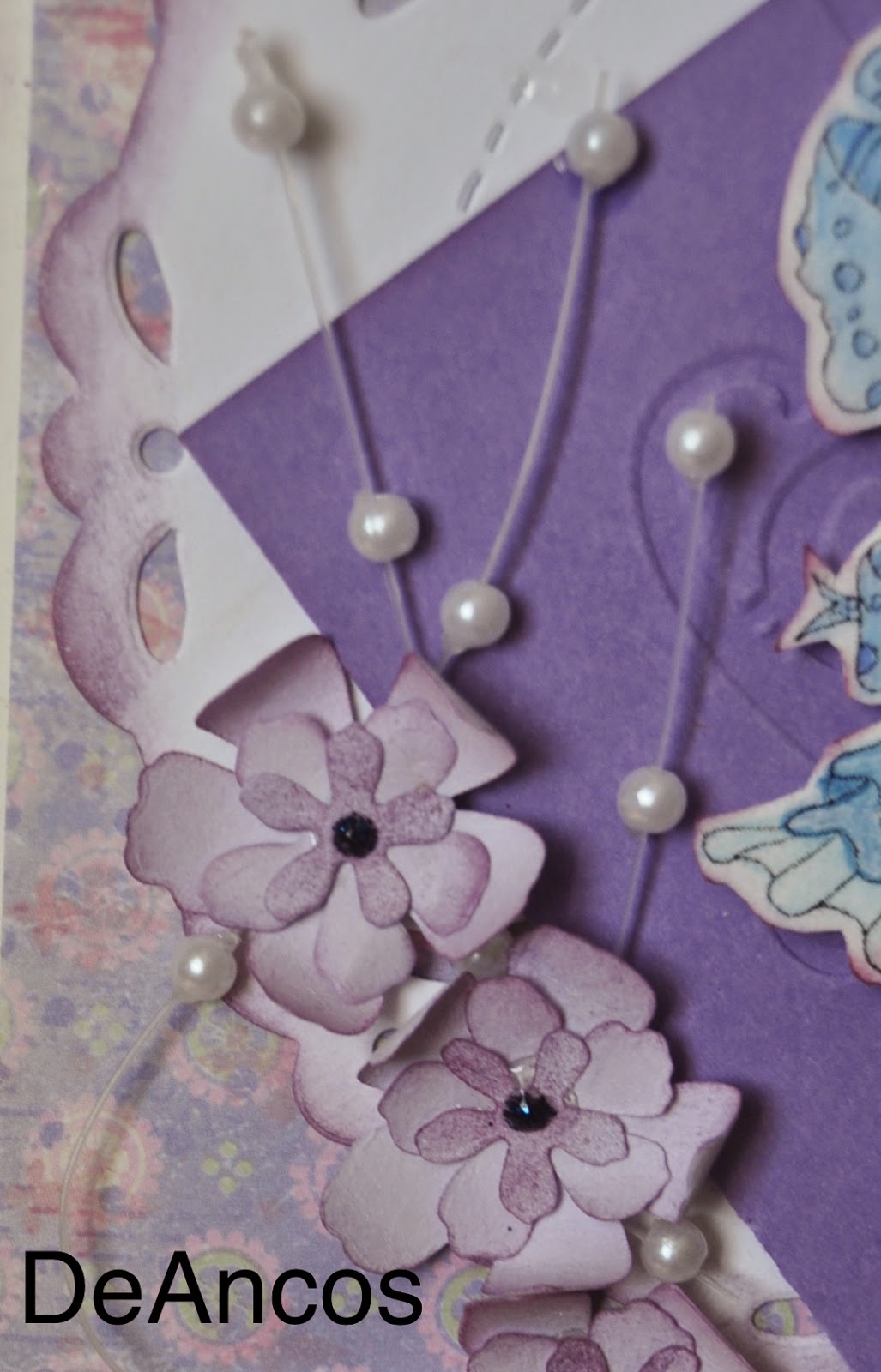 El toque coqueto se lo he dado con las varillas de perlitas que le colocado junto a las flores que he montado.