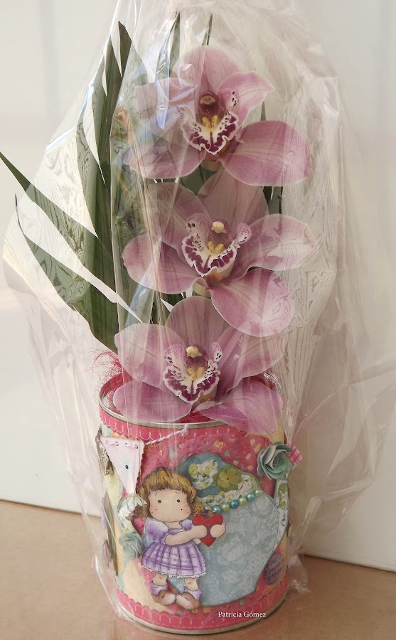 Partiendo de una lata que alteré, y añadiendole un bonito arreglo floral este fue el resultado.