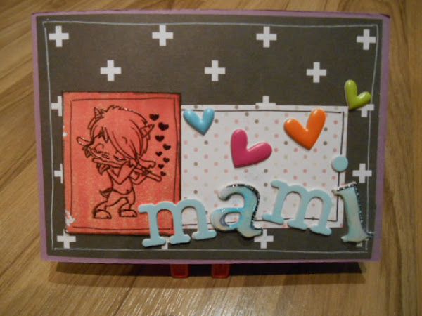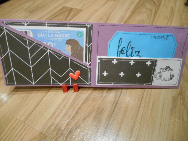 Y este ha sido el regalito para mi mami, un tarjetero con un númerito de la Once y un tag con mis sentimientos hacia ella.